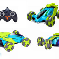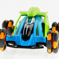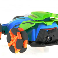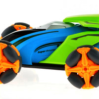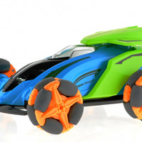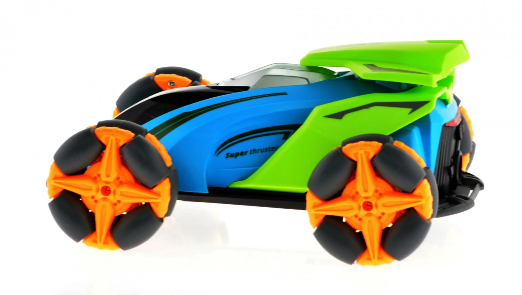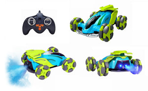 1:16 scale stunt car with lights and fog function. This car can be driven forward back turn right and left like any car BUT it also can spin around itself, drive sideways left and right and do stunts. A fog function turns on a mister that generates a fog stream behind the car and is enhanced with a light that give it a blue hue. 2.4 GHz remote system prevents interference and allows to run / race up to 50 cars at the same time. Rechargeable batteries are environmentally friendly with run time of about 15 minutes per charge.