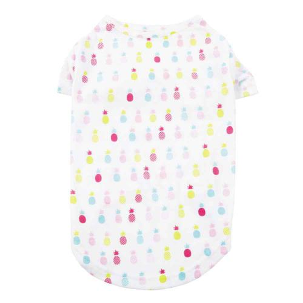 Our snazzy Casual Canine Pineapple Tee helps customers get their pups stylishly dressed in no time flat. A unique dog apparel choice for morning walks around the block, playdates at the park, or parties. The classic, no-fuss T-shirt features a cool pineapple graphic print that will surely stand out.