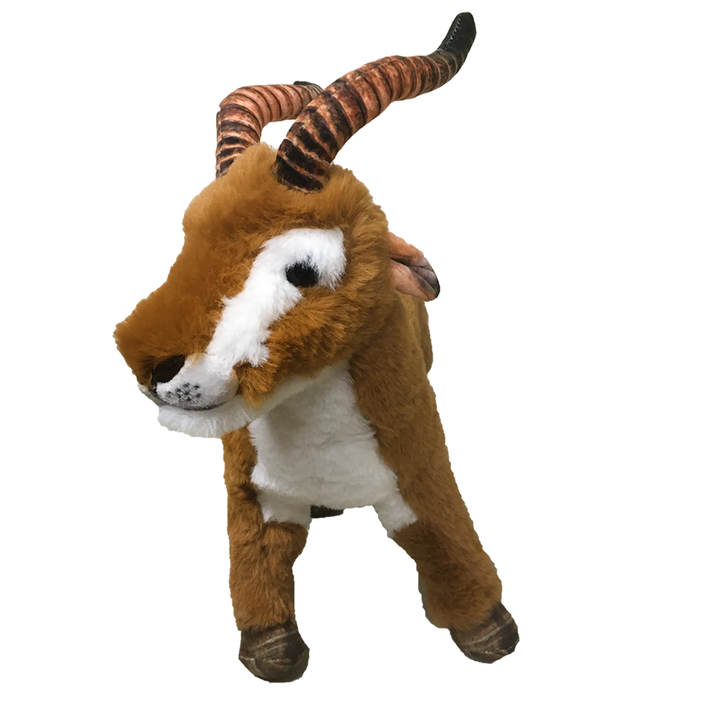 One widely familiar gazelle is the African species Thomson's gazelle (Eudorcas thomsoni), which is around 60 to 70 cm (24 to 28 in) in height at the shoulder and is coloured brown and white with a distinguishing black stripe. The males have long, often curved, horns.