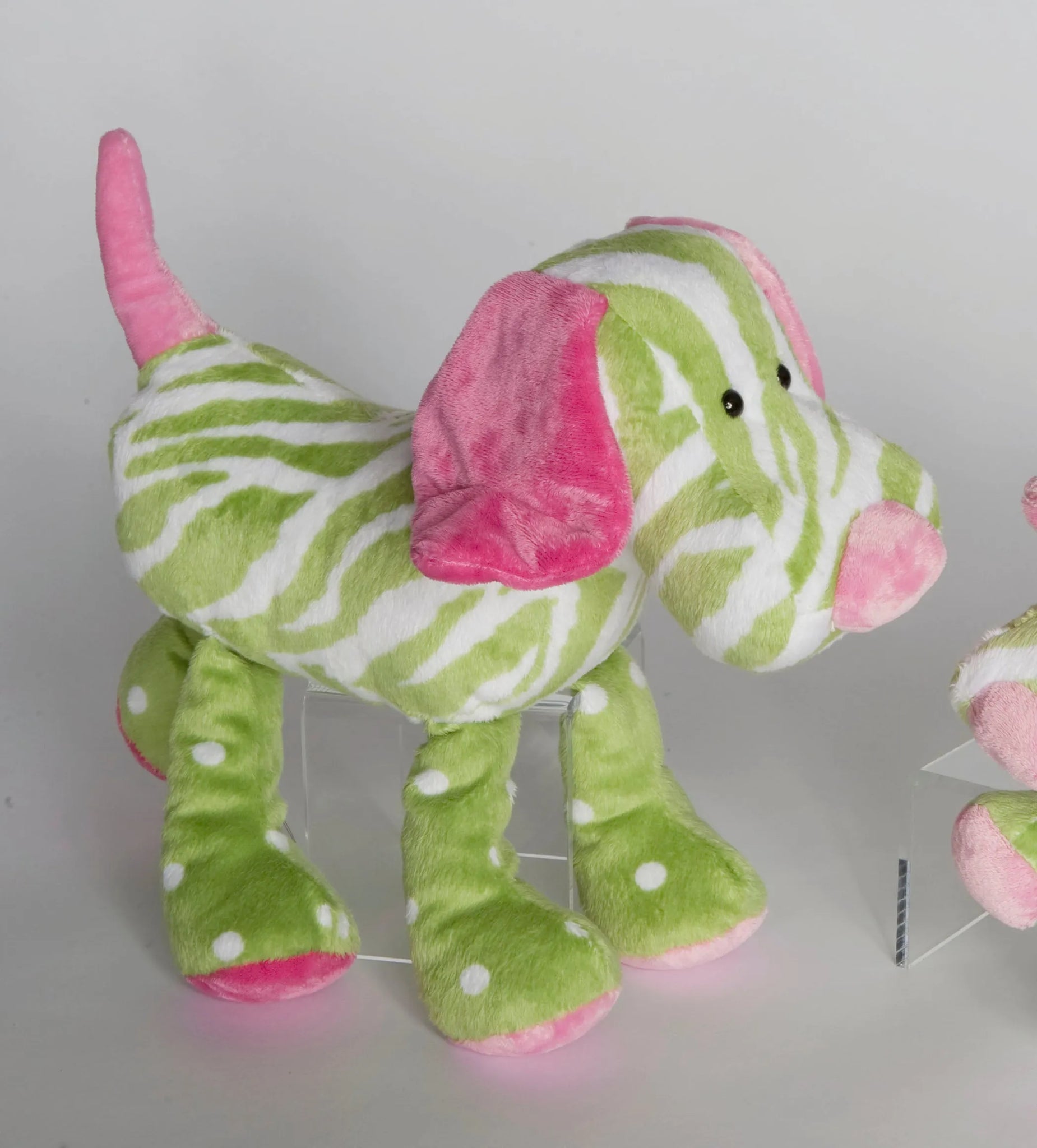 A unique and playful experience is guaranteed when you purchase a Kauai Tropical Dog. Its colors bounce to life with vibrant shades of green, pink and white that were inspired by a tropical paradise. The Kauai Tropical Dog's fuzzy fur coat makes it an ideal snuggle buddy that'll put a smile on any face and brighten up any bedroom.