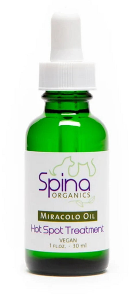 As its Italian name implies, Miracolo Oil Hot Spot Treatment is enriched with a healing, rich blend of botanical extracts, that work miracles on small wounds and irritated itchy spots. Miracolo oil is a proprietary blend of organic oils, naturally rich in Vitamin E, with antioxidant effects that moisturize and fight inflammation. Watch the bites, itchiness, and abrasions disappear in record time with just a small drop of our soothing, organic treatment oil. Infused with Argan, Grapeseed, Avocado, Prickly Pear, and Sunflower oils, among others, these oils are naturally harvested from the earth and carefully selected for their medicinal benefits for your pet. This blend of organic botanicals and essential oils work as great on humans as it does on pets, and you'll be sharing it if your bff lets you!