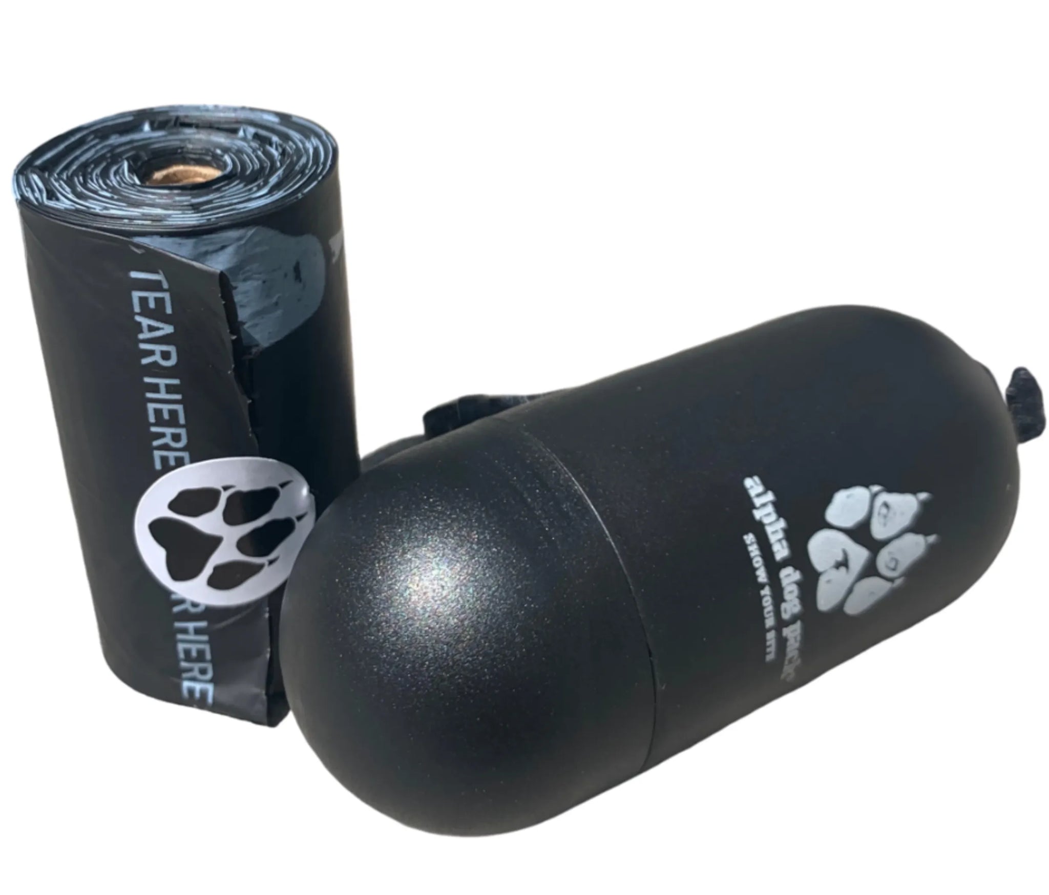 Our alpha-quality poop bag dispenser is a convenient holder for our dog poop bags (fits all standard-sized rolls). The adjustable strap allows it to attach to any size leash including our handmade leather leashes, while the screw-on dispenser top keeps bags secured. Includes one (1) unscented roll of 15 Alpha Dog Pack ASTM compostable dog poop bags.