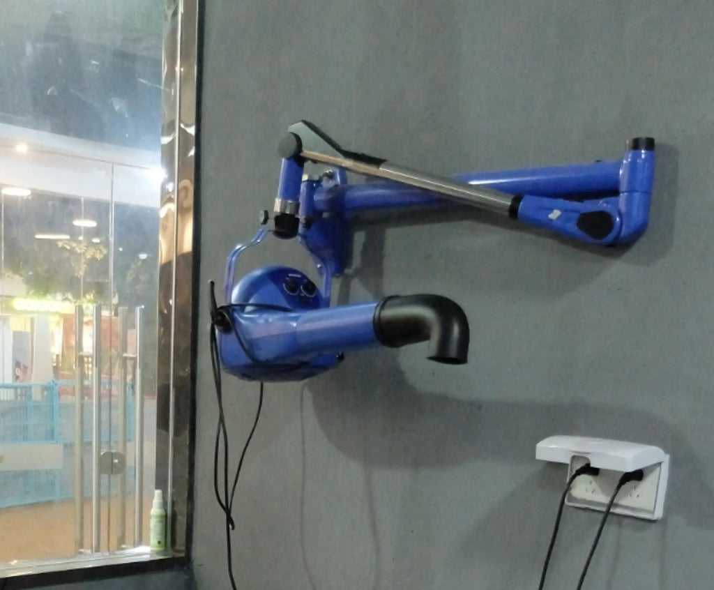 The Wall Mount Arm for XPOWER Finishing Dryers serves as one of two options to conserve space in a grooming salon, and improves workflow between grooming stations in a smaller working space. The wall mount arm swings 180? left and right, and features hydraulics to conveniently lower the dryer to desired height, and includes mounting hardware that must be securely mounted to concrete or a wooden wall stud for safe operation. The Wall Mount Arm is sold separately as an accessory to XPOWER Pet Grooming Finishing Stand Dryers, the B-16 and B-16S. Dryer not included.